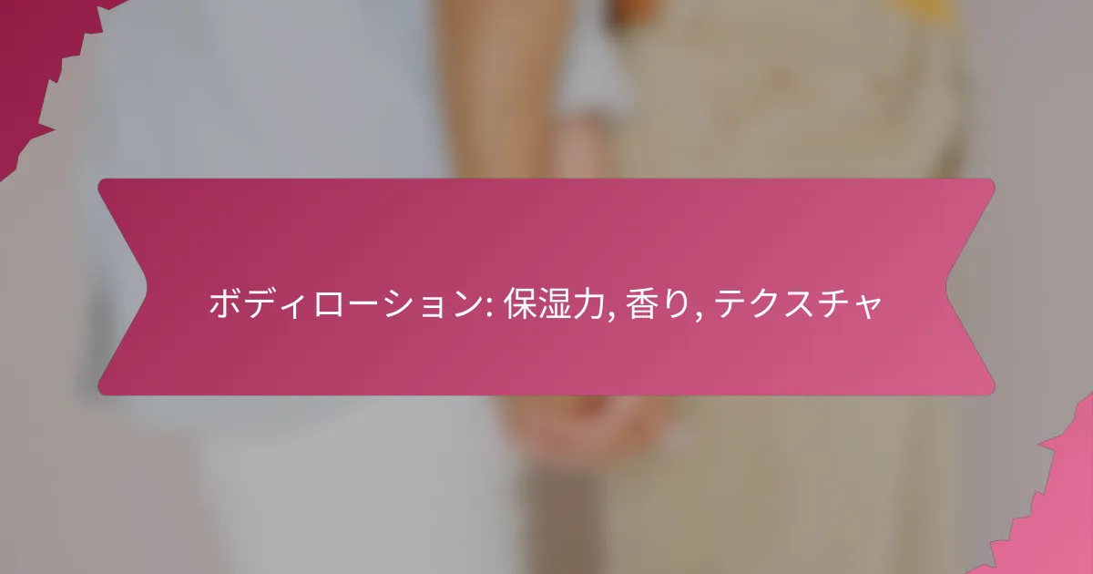ボディローションを選ぶ際、テクスチャーは重要な要素です。肌質や季節に応じて適切なテクスチャーを選ぶことで、より効果的な保湿が期待できます。例えば、冬場はクリームを、夏場はジェルを選ぶと快適に使用できます。